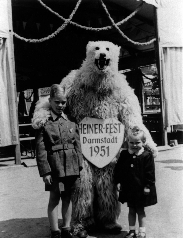 Das erste Heinerfest (29.06. – 02.07.1951) wurde zu einem Fest der Erinnerung und der Trauer, aber auch der ausgelassenen Freude darüber, nach jahrelanger Entbehrung endlich wieder einmal miteinander feiern zu können. Bei schönem Sommerwetter startete es am Freitagabend mit einem Konzert am Marktbrunnen. Das Orchester Paul Bänisch spielte Werke Darmstädter Komponisten, über 900 Sänger und ein 40-Mann-Blasorchester verbreiteten Feststimmung.